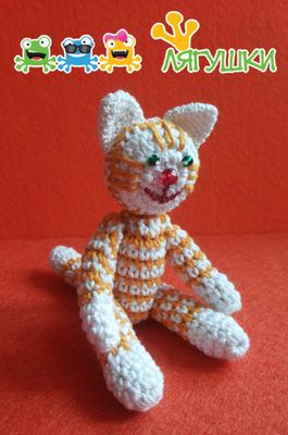 Рыжий-рыжий-полосатый! У котёнка двигаются лапки и хвост, а приятная на ощупь фактура ручной вязки развивает мелкую моторику. Тёплый подарок, чья открытая улыбка не останется без ответа! Материалы: нитки Ирис, синтепон, стеклянные бусины. Высота: 7-8 см Другие размеры и цвета доступны на заказ.