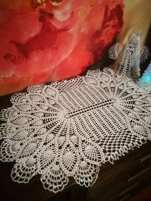 Салфетка овальная, белая, большая. Использованы нити "Ирис". По желанию можно связать длиннее. Станет украшением вашего интерьера.