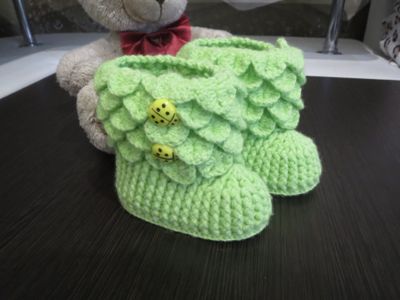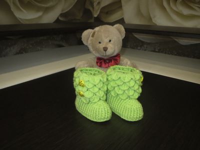 Цвет: салатовый, ярче,чем на фото Размер ступни: 10,5 см (на заказ) Пряжа: Детская Пехорка, акрил-100%