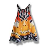 Очаровательный летний сарафан с зАпахом для девочки, выполнен из тонкого сатина-стрейч. Приятный на ощупь, не сковывает движения, обеспечивая наибольший комфорт. Изделие на тонких бретелях, декорировано дизайнерским принтом, имитирующим крылья бабочки . Природа - гениальный художник, мы просто воспользовались ее идеями. Отличный вариант для прогулки и праздника! Юная красавица будет словно завернута в крылья бабочки. Яркий, просторный сарафан можно использовать как карнавальный костюм. Сарафан легко стирается и моментально сохнет, он будет идеальным нарядом для похода на пляж. Цена платья зависит от размера. Рост 56-80 см - 1600 рублей. Рост 86-104 см - 1800 рублей. Рост 110-122 см - 2000 рублей. Готовая работа имитирует крылья бабочки Златоглазка Библис. Возможно изготовление платья с "крыльями" другой бабочки.