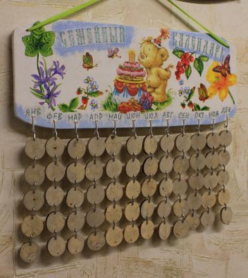 Семейный календарь выполненный в технике декупаж и роспись. Отличная напоминалка дней рождения родных и близких!