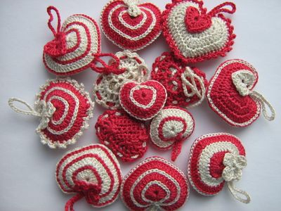 Вязаные сердечки крючком, размер 4 см