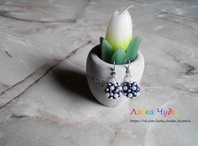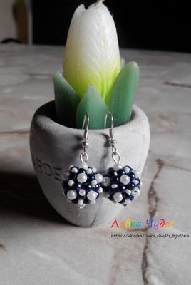Материал: Бусины, бисер темного синего и жемчужно-белого цвета Металлическая фурнитура под серебро Длина: 3,5 см