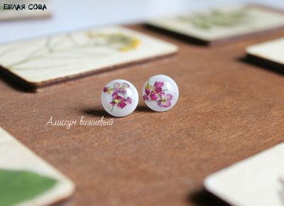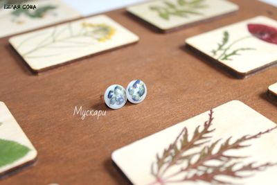 Малюсенькие, гладкие, блестящие, с милыми цветочками- с незабудками, сальвией, мускари и алиссумом. Носить можно как с платьем,так и с джинсами. Как на праздник,так и на учебу или на работу. И вторых таких не будет ни у кого) Диаметр всего 12мм,заглушка металлическая.