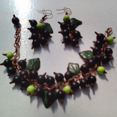 Браслет и серьги черная смородина выполнен из полимерной глины. Ручная работа: каждая ягодка сделана с хорошим настроением и любовью. Этот стильный комплект не оставит равнодушным ценителей handmade.