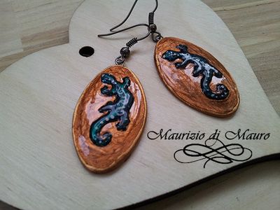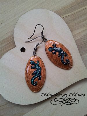 Роспись выполнена в ручную с использованием акриловых красок и контуров. Никаких наклеенных картинок, вся работа сделана вручную, что придаёт серёжкам уникальность.Серьги покрыты стреловидной глазурью, ящерки выпуклые.