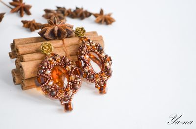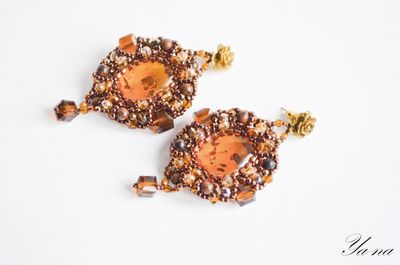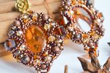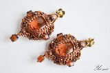 Янтарь - символ счастья и здоровья. С древности его использовали как могущественный талисман и амулет. Янтарь является источником творческих сил, веры и оптимизма. Он усиливает интуицию и помогает реализовать планы в конкретные действия, приносит удачу, радость и покой, дает бодрость духа, сохраняет здоровье. Как-то мне в руки попали два камушка янтаря (спасибо подруге). Отдала их знакомому ювелиру, он их отпалировал и засверкали они изумительным, теплым светом. А внутри спрятались красивые включения, которые "играют" на солнышке. Эти камушки сразу запросились в сережки. Сначала мне хотелось сделать их другими, но они прямо заспорили со мной, что не хотят быть такими, как я задумала изначально. И на одном дыхании получились вот такие янтарные сережки, в обрамлении из шикарного японского бронзового бисера, бусин яшмы и чешских стеклянных бусин. Материалы: янтарь, бисер Тохо, чешские бусины, бусины из яшмы, металлофурнитура Размер: 7 см в длину, 4 см в ширину.