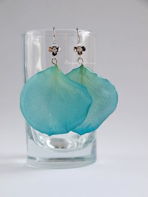 Серьги из лепестков окрашенной розы.