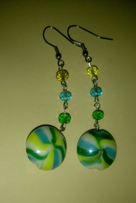 Яркие летние сережки выполнены из бусин чешского и муранского стекла на гиппоалергенных швензах из медицинской стали, по вашему желанию могу поменять на серебряные с небольшой доплатой, длина серег 8см