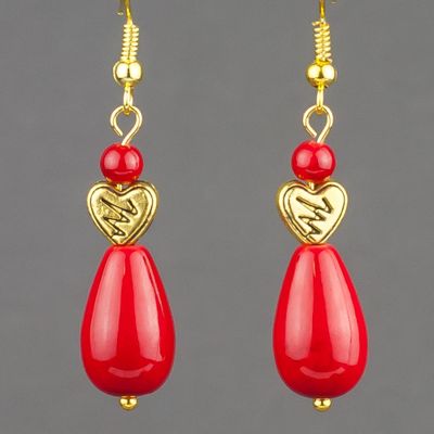 Серьги из прессованного коралла и металлических сережек.