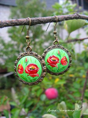 Серьги в бронзовой основе. Расписаны акриловыми красками. Внутренний диаметр 20мм