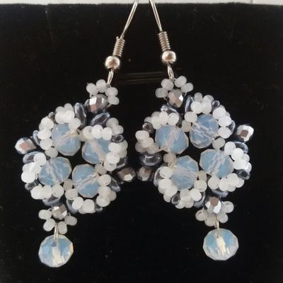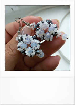 Серьги диаметром 2,5 см и длиной 5 см мо швензой. Изготовлены из чешского бисера Twin и Presiosa и чешских стеклянных бусин.