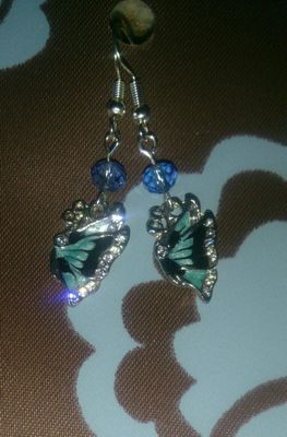 Серьги с эмалевыми подвесками,стразами из ювелирного стекла и чешскими бусинам на гиппоалергенных швензах из медицинской стали, по вашему желанию могу поменять на серебряные с небольшой доплатой.Длина сережек 5см