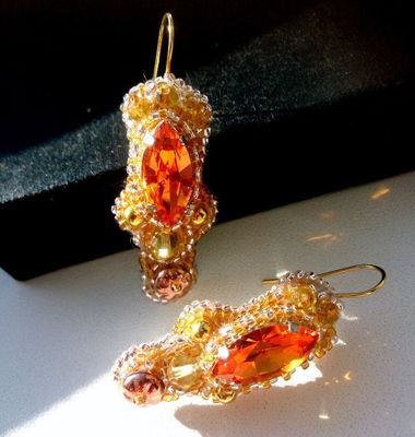 Для изготовления сережек были использованы : кристаллы Swarovski, японский бисер Toho 15, чешские бусины,