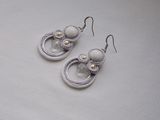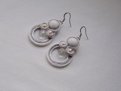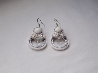 Серьги White 4*2,8 см сутаж, бусины, иск. жемчуг, кабошон Говлит