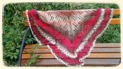 Яркая осенная шаль - и вы не пройдете незамеченной! Можно надеть и как снуд,и как платок - ее легкость позволяет придумать многое. Брошка-цветочек в подарок.