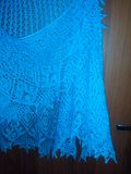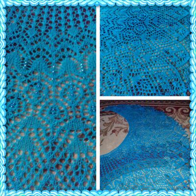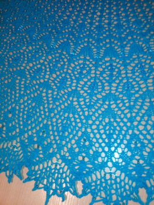 С каплями нежного бисера ажурная шаль необыкновенной красоты! Станет нарядным аксессуаром и подарит уютное тепло . Связано с душой и от всего сердца. Цвет очень красивый- глубокий голубой с лёгкой бирюзой. Размер 70х220 см