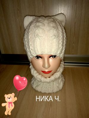 Шапочка с ушками + шарф связаны из полушерсти(меринос),Выполню в любом размере