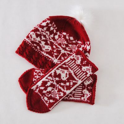 Тёплый, яркий комплект выполнен из качественной шерсти мериноса классическим русским рисунком. Отлично подойдёт для морозных дней. Вы предпочитаете спортивный стиль в одежде? Тогда это Ваш аксессуар! Р-р шапочки 54-56,высота-25см Варежки р-р 7-8, длина 25 см Рекомендую ручную или бережную машинную стирку средством для шерсти при температуре до 30 град