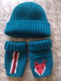 Комплект из шапочки-бини и митенок прекрасно впишется в любой гардероб. Шапочку можно носить как классическую шапку с отворотом и как шапочку-бини, делая складку на затылке. А митенки порадуют своим удобством и автоледи, и барышень, отрицающих варежки. А необычный дизайн всегда поднимет настроение и подчеркнет оригинальность хозяйки