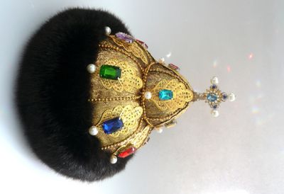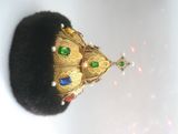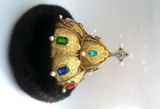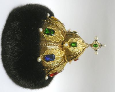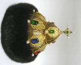 Замечательный подарок для руководителей любого ранга и своих любимых мужчин. Украсит любой интерьер, предаст блеск и неповторимость вашему дому или рабочему кабинету. Текстильная шапка ручной работы, выполнена в единственном экземпляре. Легкая, отлично держит форму, на стеганном подкладе. Отделана филигранью и различными бусинами- перл, горный хрусталь, стекло, самоцветы, стразы. Опушка выполнена из экомеха под норку темно-коричневого цвета. Экомех - это современный материал, который внешнее практически не отличается от натурального. Ворсинки искусственного меха более однородны и равномерны, и главное, при производстве изделия из этого материала не пострадало ни одно животное.