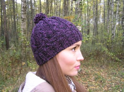 тёплая, уютная, стильная вязаная шапка с помпоном и узором из кос.