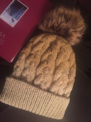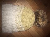 Шапка женская с натур пупоном енот цвет бежевый градиент акрил 100%