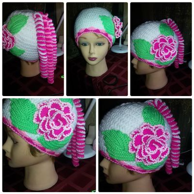 Детская шапочка связана из детской пряжи двойная связана крючком. выполню на заказ в любом цвете и размере по вашему желанию