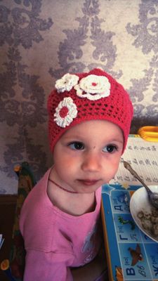 Чудесная шапочка связана из хлопчатобумажной пряжи. Защищает от солнца и дает коже головы дышать.