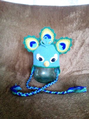 Оригинальная шапочка Павлин станет настоящим украшением для девочки и неповторим аксессуаром для фотосессии. На ребенка 5-8 лет.