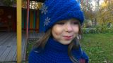 Модель выполнена спицами из полушерстяной пряжи, низ шапочки ассиметричный, что создает образ шляпки с отворотом, в качестве украшения выступают две деревянные пуговицы. Размер 52-54. На фото девочке 5 лет