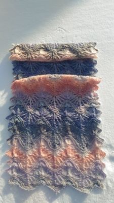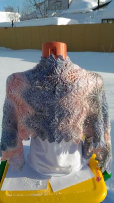 Шарф изначально вязался палантином, но что то не дало родится ему, а на свет появился шарф с красивым ажурный узором ,,золотое руно,, длиной 130 см и шириной 37 см