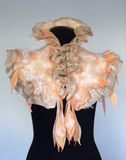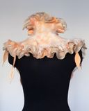 Этот роскошный шарф-горжетка станет настоящим украшением вашего гардероба. Его можно носить вместе с пальто или жакетом, как альтернативу меховому воротнику. Он также будет отличным дополнением к нарядному платью для похода в театр или в гости. Его можно закрепить брошью или завязать с помощью цельноваляных шнурочков. Шарф изготовлен из тончайшей итальянской шерсти, декорирован волокнами вискозы, украшен очаровательными мягкими кудряшками. Часть воланов – из натурального шелкового шифона, окрашенного вручную. Этот шарф - единственный в мире:) Делать повторов не буду. Размеры: длина: 107 см с кистями (72 см без кистей), ширина - 30 см Рекомендации по уходу: ручная стирка в прохладной воде средствами для шелка и шерсти, выжимать, не выкручивая. Гладить влажным при температуре 130-160 градусов (режим для шерсти), сушить в разложенном виде.