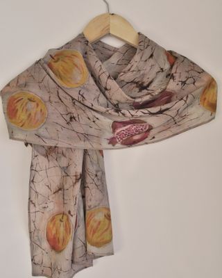 Шарф из шерстешелка (70% шерсть 30% шелк). Размер 145*45 Расписан вручную в смешанной технике (холодный батик, горячий батик). Оригинальный, стильный подарок, единственный в своем роде.