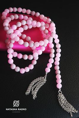 Это шарф, выполненный из натуральных камней станет любимым аксессуаром у любой девушки. Розовый-цвет романтизма и легкости. Цвет влюбленных. Камни: агаты в серебре