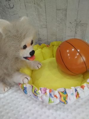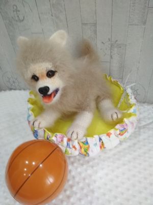 Пушистик ищет новый дом. Каркасная собачка,голова на шплинтовом крепление Рост 33х31 без учета хвостика и ушек.Связана по МК Коротких