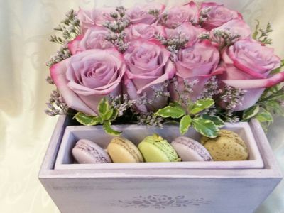 Шикарный букет из роз в эксклюзивном коробе ручной работы