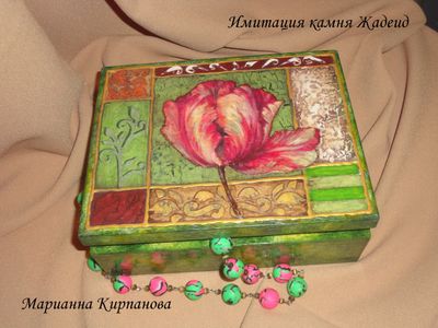 Шкатулка с имитацией священного камня Жадеид с объемным рисунком