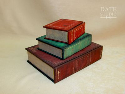 Шкатулка - тайник стопка книг. подходит для хранения мелочей, бижутерии. Можно использовать для хранения сигар. Все книжки открываются. Нижняя книга 20х15 см, верхняя 8,5х10,5 см, высота 13 см.