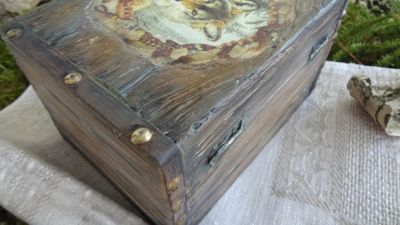 Волк - хищный зверь, давний сосед славянского племени. Как священное животное, волк весьма почитался славянами, и отголоски этих почитаний сохранились и поныне в сказках и легендах, где волк, является одним из самых честных персонажей. Волк, как-будто стережет Ваши секреты, которые Вы храните в этой надежной шкатулке… Шкатулка «Волк», размер 18*12,5*10,5, материал – дерево, имитация очень старого дерева, вживление, тонировка. Подойдет для хранения Ваших сокровенных вещей. Отлично впишется в интерьер в стиле «шале", "рустик», «охотничий». Может быть отличным подарком как для мужчины, так и для ценителей славянской культуры. Рекомендации по уходу: умеренная влажная обработка.