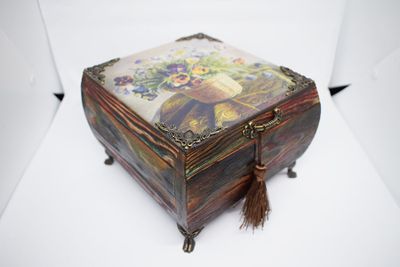 Шкатулка из массива сосны в стиле декупаж,брашированная,крышка фанера,покрыта водным лаком,металлическая фурнитура,внутри отделана фетром.Размер15,5х15,5х9