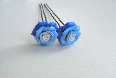 Шпилька с розой из полимерной глины.