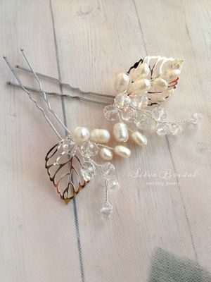 Этот комплект шпилек очень универсален. Подойдёт для любой причёски и будет отлично смотреться с фатой.