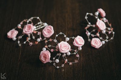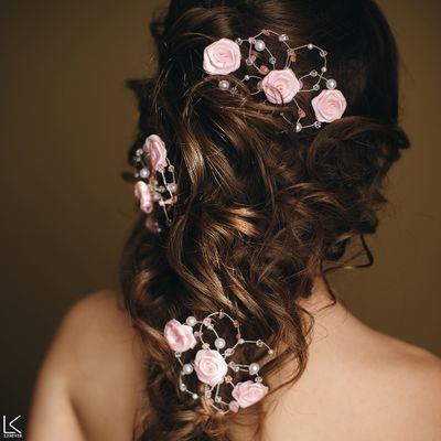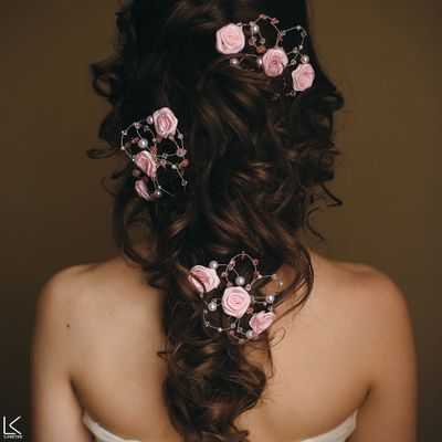 Шпильки для свадебной прически в нежном розовом цвете прекрасно подойдут как для косы, так и для пучка. Граненые бусы привлекут к Вам дополнительные восхищенные взгляды, особенно в солнечный день или в хорошо освещенном банкетном зале. В комплекте 3 шт. Возможен заказ поштучно. Цена за 1 шт - 350 руб. Шпилька 7 см. Украшение плоское, в высоту без шпильки - 15-20 мм. Диаметр по самым широким лепесткам 13 см, по коротким - 9 см.