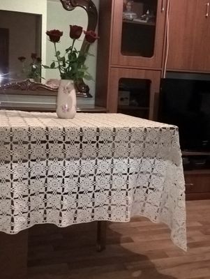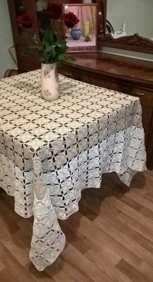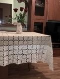Скатерть. Отличный подарок в любой интерьер...Размер 2м*1,86м..Квадратный мотив размером 8см*8см. Пряжа "Фиалка", 100% хлопок, 2 цвета - кремовый и белый.