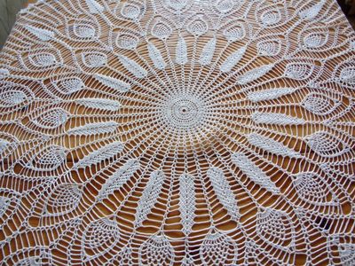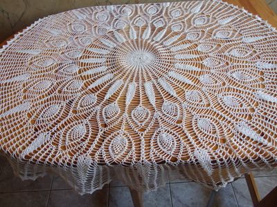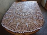Скатерть связана из ниток "Ирис" белого цвета.Диаметр скатерти 113 см.После строкой крахмалить,гладить.Оплата наличными при личной встрече,возможна отправка почтой при 100%-ой предорплате.Тел.89164023191