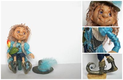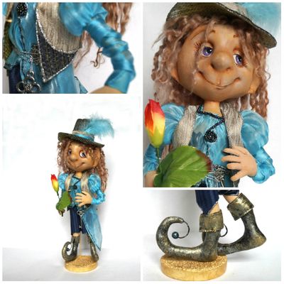 Милый, добрый, волшебный.... Эльфик с волшебным шаром выполнен в технике грунтованного текстиля. Тело, ручки с пальчиками, на проволочном каркасе, ножки в коленном суставе на ниточных шарнирах. Не предназначен для детских игр.