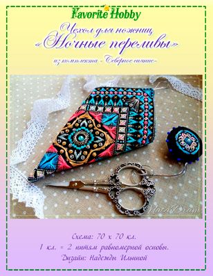 Чехол для ножниц из комплекта "Северное сияние" Дизайн Надежды Ильиной. Техника: декоративные швы (шовчики), бэкстич, барджелло. Размер схемы 70 на 70 кр. (2 детали)