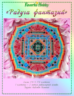 Предлагаю окунуться в Радугу фантазий. Это мир удивительных красок. Дуги радуги разноцветные, но чтобы они появились, необходим солнечный свет. Солнечный свет кажется нам белым, но на самом деле состоит из цветов спектра. Мы привыкли различать в радуге семь цветов - красный, оранжевый, жёлтый, зелёный, голубой, синий, фиолетовый, но так как спектр непрерывен, то цвета плавно переходят друг в друга через множество оттенков. Давайте наполним нашу радугу любимыми цветами! Техника - шовчики, бэкстич Размер схемы - 176 на 176 крестиков 1 крестик = 2 ниточкам канвы равномерного переплетения К схеме прилагается подробное описание всех швов.