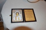 Складень - эта икона, состоящая из нескольких частей, которые аккуратно складываются в одно целое. На Руси с древних времен особенно были распространены складни из трех частей. Сегодня очень популярны иконы из двух створок. На одной из них изображен святой, а на другой ангел-хранитель. Ручная, вышитая бисером, размер 9 х 12 см. , под заказ